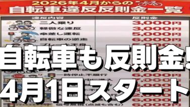 トレンド 2026年4月1日から自転車「青切符」スタート|反則金いくら?113項目の違反リストと対策まとめ 2026年4月1日から自転車の交通違反に反則金が科される「青切符制度」がスタート。信号無視6000円、ながら運転1万2000円など113項目の違反と金額を一覧で解説。イヤホン・ヘルメット・左折レーンの疑問にも答える完全まとめ。 2026.03.31 トレンド